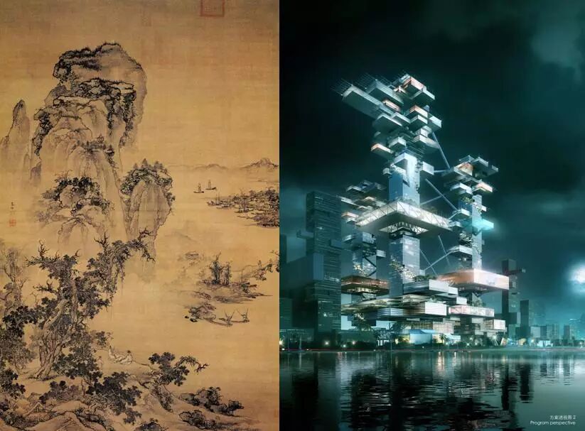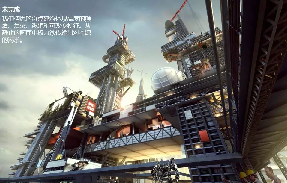 这对我们有巨大的启发,我们未来的城市、建筑是不是和这个有关?所以我们做了一种尝试,我想未来建筑不一定完全如此,但是我们把这种颠覆传统美学、颠覆传统价值、颠覆传统思维运用到这次创意当中。
