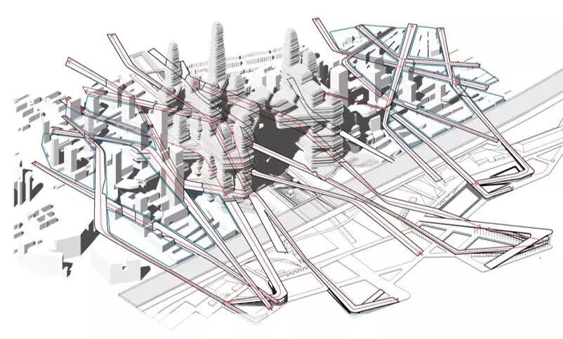 结合垂直和水平交通网络,业态和功能的三维立体布置能够构建独特有趣,而又紧凑合理的城市和建筑空间,激发人们的梦想。