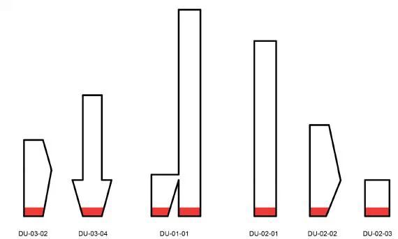 这是多层次高层的空间示例,我们希望多层还是切的很碎的,高度也作了分析,为了减小它的高宽的比例,同时带来比较舒服的自然通风效果,我们也推敲了它的比例关系。