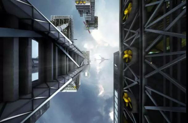 我们希望在空中形成有机农场,在底部伸出的平台当中有风力发电,整个绿色系统形成之后能补充整个超级城市所利用的能耗,或者能够自给自足。我们的理念其实很简单,里边各种净化系统相当于人的血管,其他各个不同的功能包括收集的风能、电能全部储存起来,形成一个能量提供源,在利用的时候可以慢慢释放出来,这也是一个能源系统。