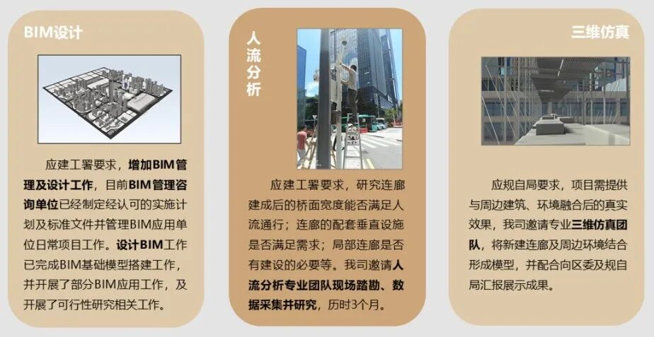 但是中心区二层连廊项目二期实际上并没有全部实施落地,只是完成了一标段的工作,即对现状连接会展中心、皇庭广场、中心城和旁边建筑的六座天桥进行结构加固和维修升级。由于在项目推进过程中出现了难以克服的多方面问题,实施难度过大,于是在2021年初,由工务署牵头跟区政府做了汇报,停止了这个项目。回头看,这个项目我们很努力,但的确有很多客观的因素,单靠企业的力量很难全部推动落地解决,后续如果要重启推进,可能还是需要有更高层次的政策性支持。