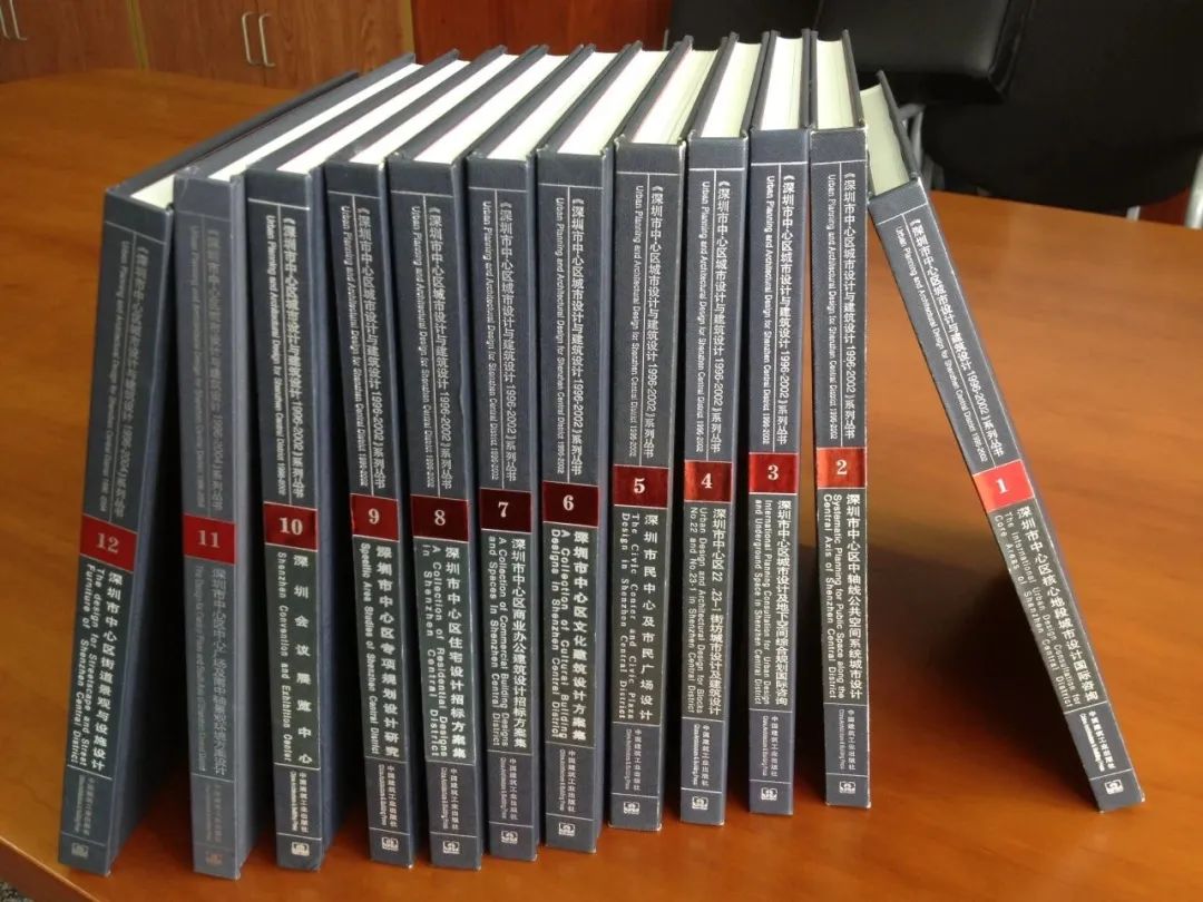 第四个故事,深圳的城市设计以中心区为先例,中心区城市设计是成功的实例。1987年,英国陆爱林戴维斯规划公司跟我们局合作编制了深圳城市设计首例。实际上1996年中心办成立后,我们一直不知道有这本城市设计。但中心区从1996年至2002年是中心区城市设计最频密的阶段,中心区逐轮编制并推进实施的城市设计都基本实现了城市设计的五个要点。至2004年中心办汇编了《深圳市中心区城市设计与建筑设计(1996-2004)》12本丛书(图11)。