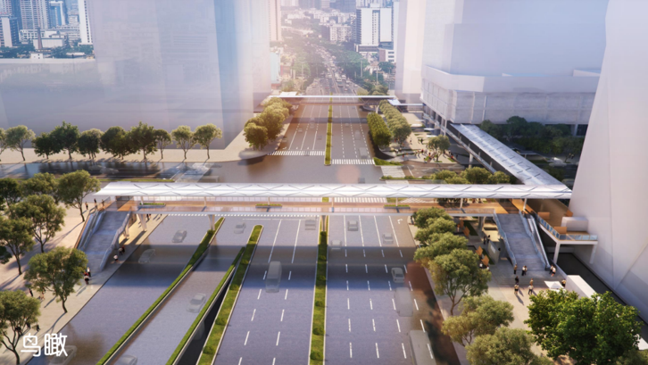 福田中心区两公里的中轴空间功能非常丰富,满足了不同人群的需求。中心区之所以可以成为大家所喜欢的空间,离不开像陈总他们这些非常有理想、有专业、非常负责的、有职业操守的行政管理人员、规划设计者、施工方等等。我也非常幸运可以参与到福田中心区的一些规划项目。福田中心区的空间连廊是2016年底启动,绝大部分的规划工作大概是在2017年,当时中心区以空中平台为核心的立体的大型系统都已经建成,所以这个项目主要做一些缝合、提升以及完善的工作。我们希望将福田中轴线贯通,当时想在水晶岛上做一个临时的天桥或者连廊。但是水晶岛就像深圳的眼睛一样,太敏感、太重要了,我们需要非常谨慎地对待,所以临时的连廊暂时没有采纳。