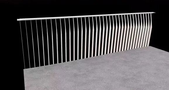 这个产品中我们最大的突破是,不同于常规杆件栏杆,一般分为落地的结构柱以及纯遮挡的非结构杆,我们抹去这一区别,所有杆件既是结构也是遮挡。其次,不使用常规的圆杆/方杆而选择了钢片,在正视时达到最高程度的通透。只不过,单纯的薄片容易弯曲和晃动,经多稿推敲后最终敲定了下段弯折的方式,不增加太多造价便解决了结构难题。如此,鱼鳞般的栏杆在正看的通透与侧看的密实之间形成了微妙的渐变过度。