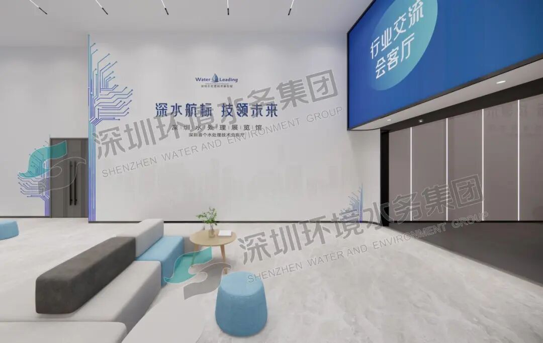项目以“深水航标,技领未来”为主题,打造面向行业的“污水处理技术交流的会客厅”,具备行业交流、行业互动以及科普等功能的综合体验空间。展览以“水的一次革命性航行”为叙事结构,同时结合线性场地,创造技术革新向前的观览体验,展示了深圳在国内城市污水处理工艺应用中,扮演着先行示范的角色。