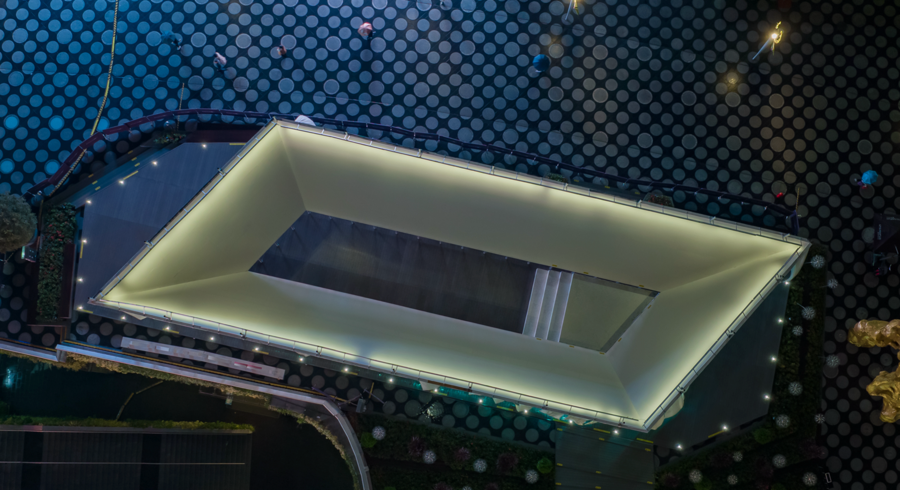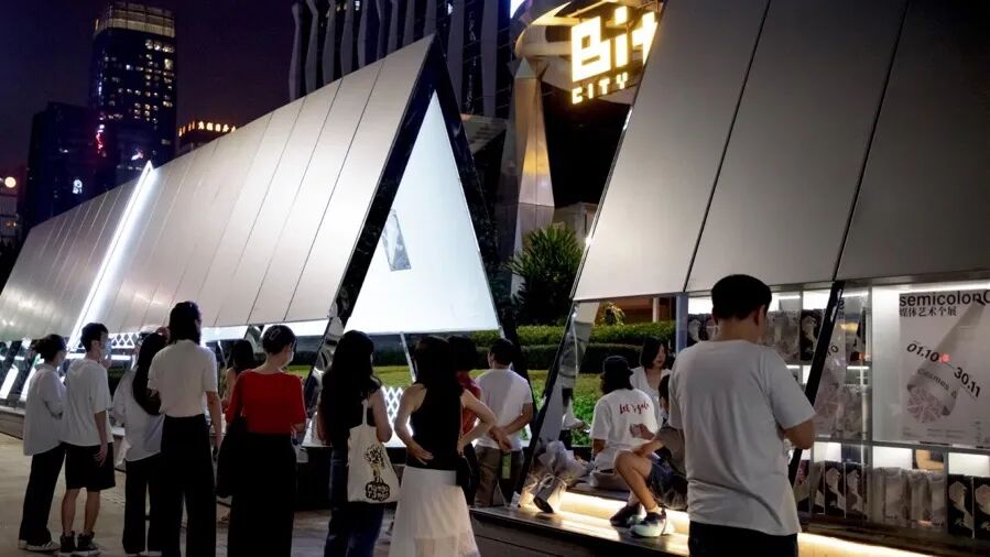 随后这几年我们一直在城市的公共空间游走,包括一些公共艺术类建筑以及临时建筑等。这个是我们在2021年设计的「增量美术馆 Delta Gallery」,它是一个立于人行道上的街头美术馆,同时它的结构本身便是一个巨大的告示牌。此外的「光之展亭」是深圳光影艺术季的展厅,它成为了婚纱摄影的网红胜地。平安金融中心这样的方碑是上一代建筑师书写的篇章,而我们作为新一代建筑师的大量工作就是像雾气一样,在建成的城市空间中不断地渗透、蔓延和徘徊。