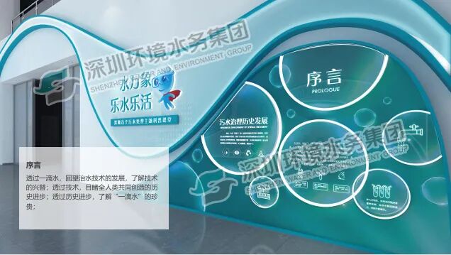 厂站内设“一水万象,乐水乐活”为主题的深圳首个污水处理为主题的科普展馆,透过一滴水,回望治水技术的发展,透过技术目睹全人类共同创造历史的进步,透过历史进步,了解“一滴水”的珍贵。