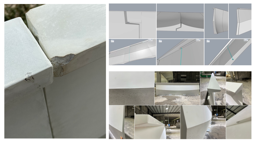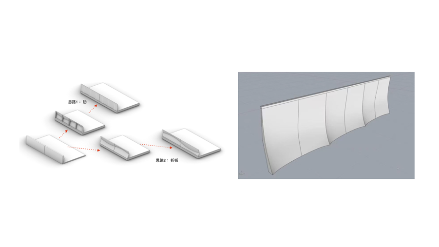 从玫瑰海岸到背角仔是数公里长的栈道。在固定造价的前提下如何通过产品的思维去解决?现状非常复杂,高低起伏,直行急转,有些地方临海,有些地方走到丛林里,有比较公共的地段,也有相对私密的区域。我们首先用编程的方式,把200多种弧度简化成了13种。其次是性能,海边空气盐碱含量高,我们认为要以整体的思维来考虑。模块1选择了超高性能混凝土UHPC,并将钢筋一体浇筑,避免锈蚀的同时,也大大加速了现场吊装的速度。
