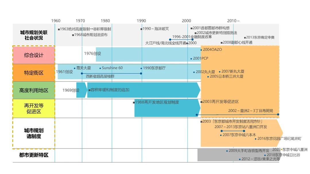 东京的规划条例从60年代开始就放宽了很多城市规划限制包括建筑高度等,但后来发现这些制度或多或少都有一些缺陷,2003年以后东京进行了整合。首都圈都市群的构想刚好是2001年,第二年国家出台了《城市更新特别措施法》,从法律上做一些突破。这些都是2000年到目前整个日本、尤其东京城市再生恢复过程当中的一些重要措施。