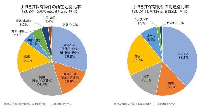 因为日本的办公需求很大,所以早期主要投资办公,后面办公以外的商业、物流、住宅包括康养设施、酒店等等都有涉猎。这里面也会存在一些问题,J-REITs物业的所在地1/4左右是在东京都内的五大洲区域,有一半是23区,加上周边的关东区加在一起就有2/3了,换句话说物业2/3是在东京及周边地区,其它的地方比较少。因此,J-REITs对于东京地区起到很大的作用,但是在京畿地区还没有享受到好处。