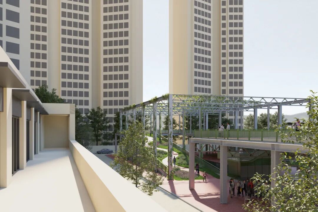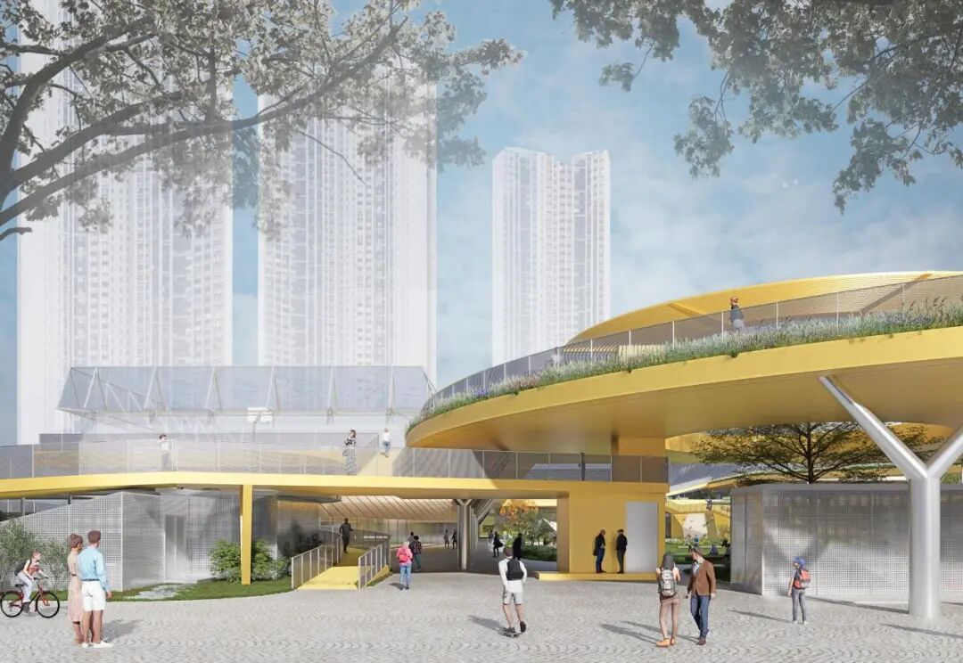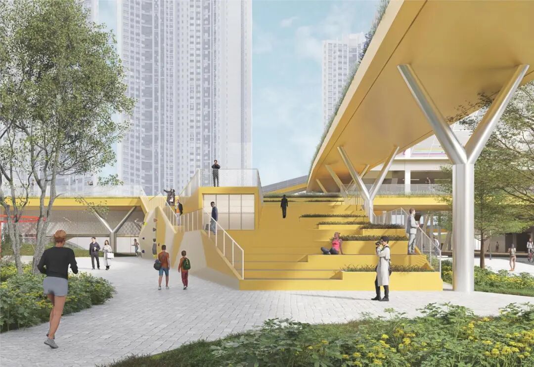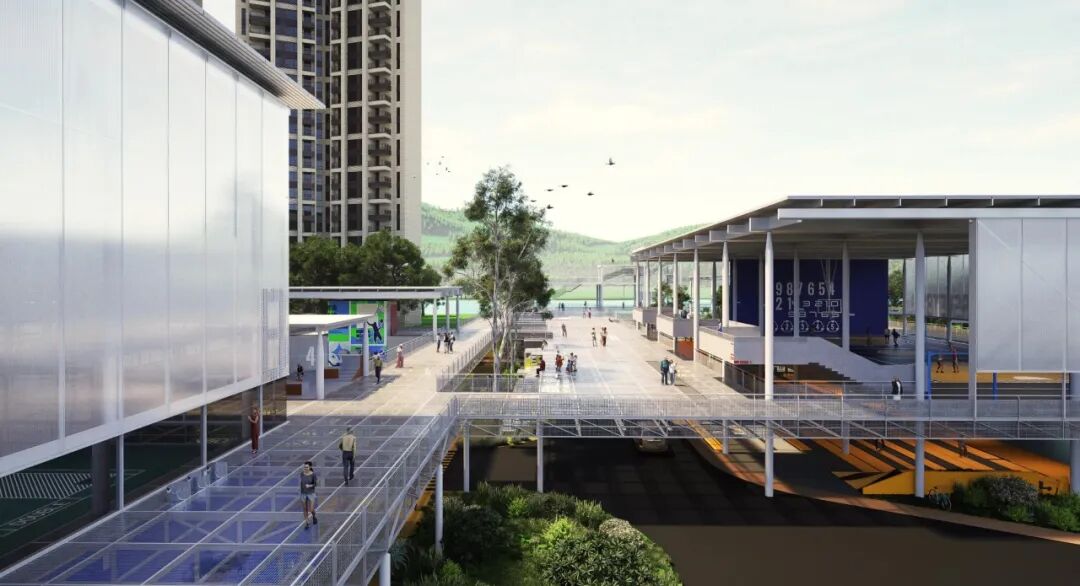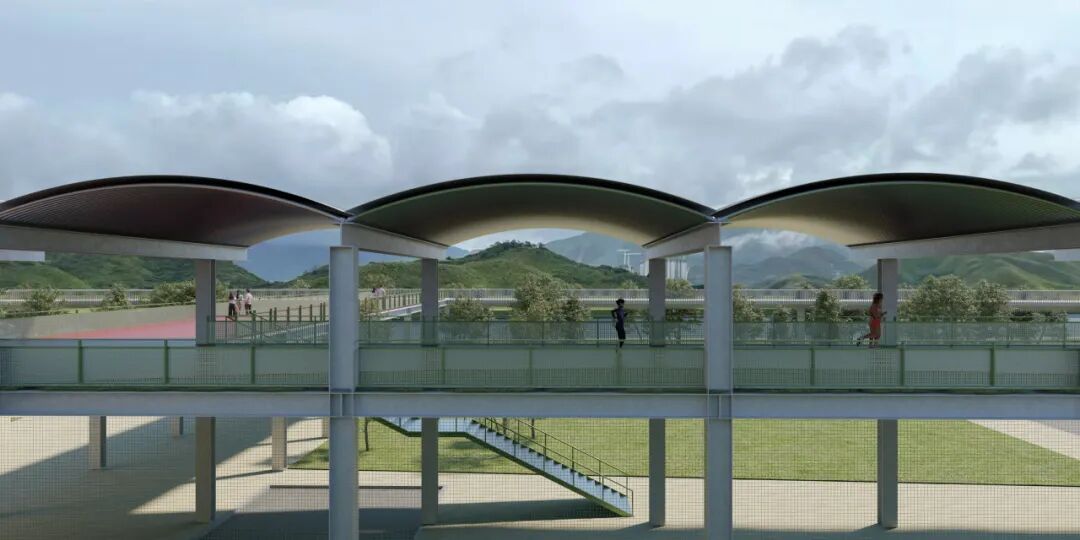 当人们走向南端的深港露台并非路径的终点,这里又可以和未来规划的沿岸滨水步道空间相衔接,或向西步入净水厂上盖公园。