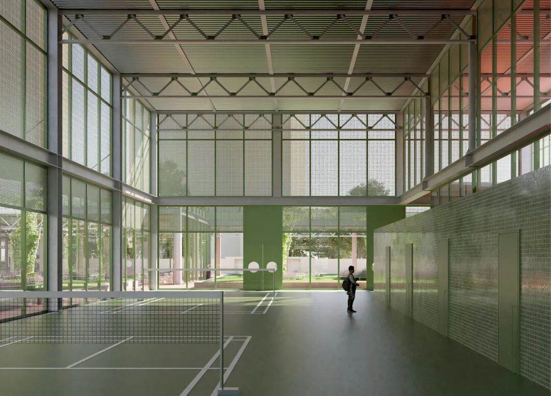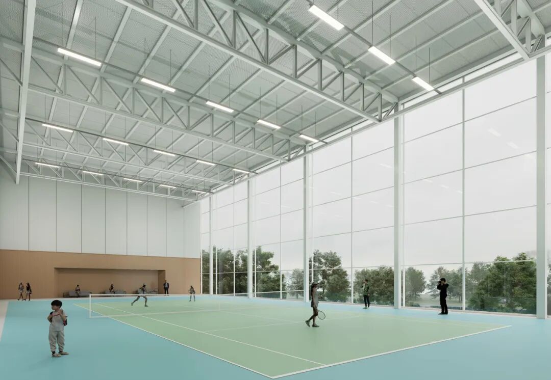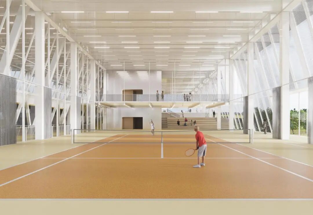 网球场室内获得开阔的空间体验。