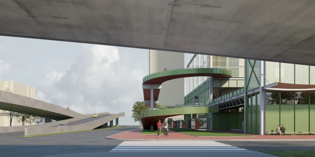 一、立体互联:通过架空的二层步道系统,与上盖公园和滨水公园形成连续的立体滨水公共空间体系;