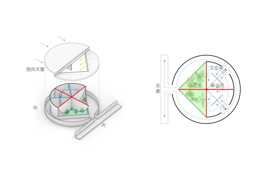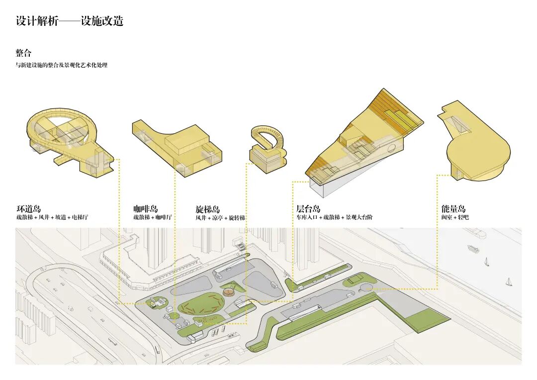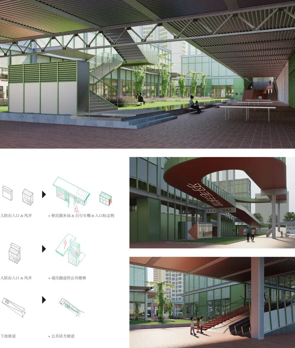 三、设施共生:充分尊重场地现有地下车库、风井等基础设施,通过精巧的剖面设计实现共生;