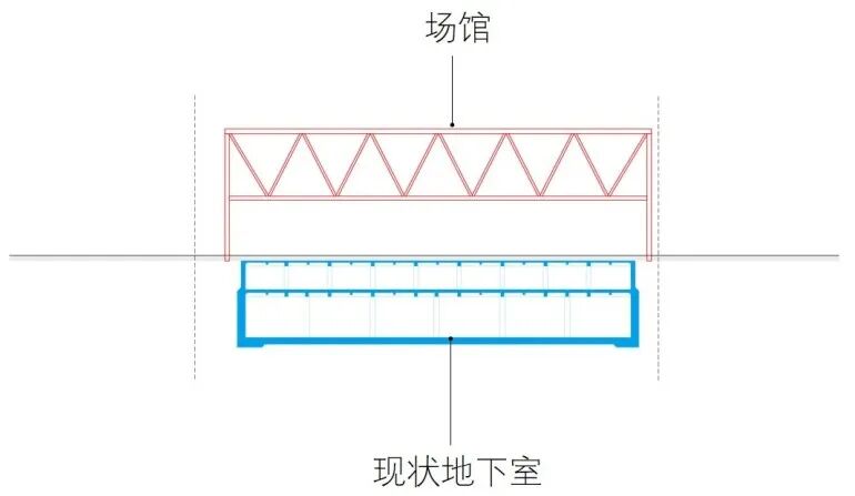 桥馆(A区):跨越地下室实现结构独立