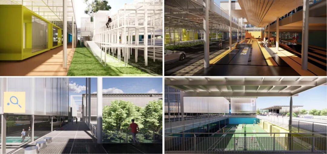 这四个方案都表达了非常清晰的场所精神,给我带来很大的触动。每一个团队都有结构分析,都采用了成熟经济的轻质钢结构,在剩余的“边角料”的地块上,构建了甚至比常规大型公共项目更松弛、更开放的公共场所。