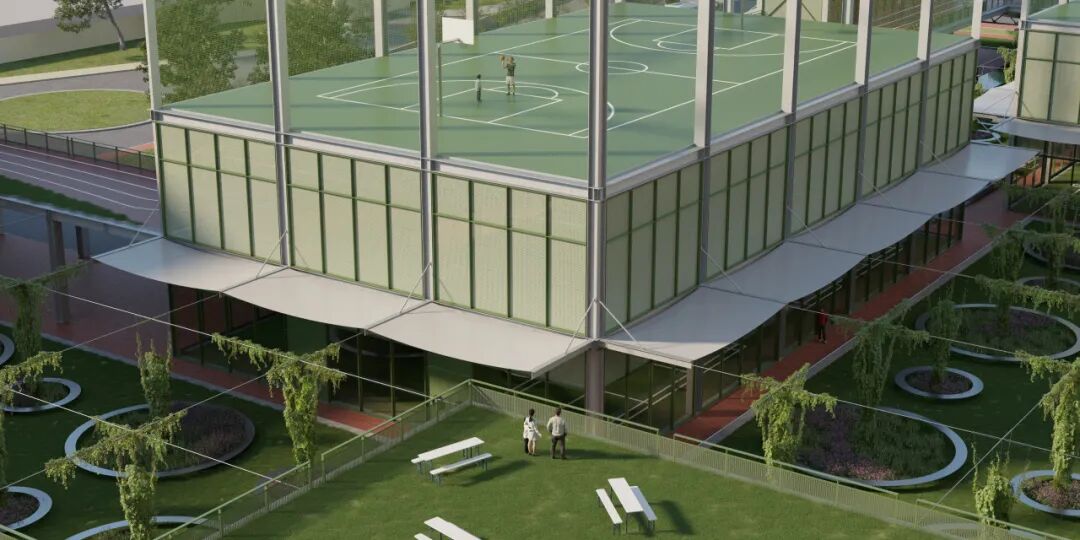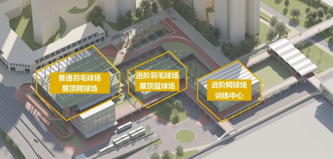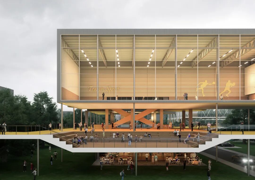 四、活力方舟——立体复合多种体育内容的体育凝聚器。包含室内外羽毛球场,网球场,篮球场及多功能健身等功能以及相应的配套服务设施。营造紧凑又具有专业性的运动空间体验。