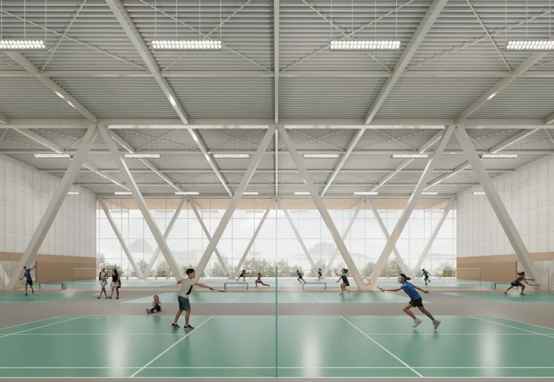 体育馆内部轻盈的空间氛围