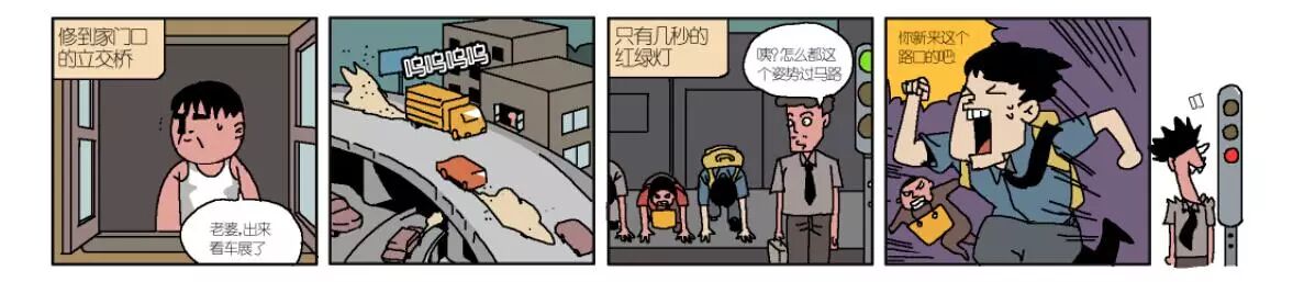 比如修到家门口的立交桥,如果遇到堵车,基本上在窗户边就可以看车展了。 他们都以冲刺的姿势过斑马线,因为行人绿灯时间太短了,而有一些新来的人不了解这个城市,绿灯瞬间就变红灯了。
