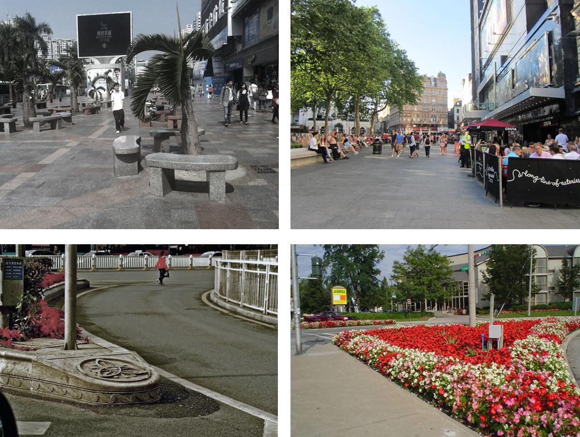 一些城市的道路系统,从色彩到地面铺装,再到家具摆设,包括公共艺术,都做了系统化的规划,每个道路都有各自的特点,每个道路根据周边的特点进行提升,一些跟服装博览会有一定关系的街道还做了雕塑艺术和植物系统化的规划。