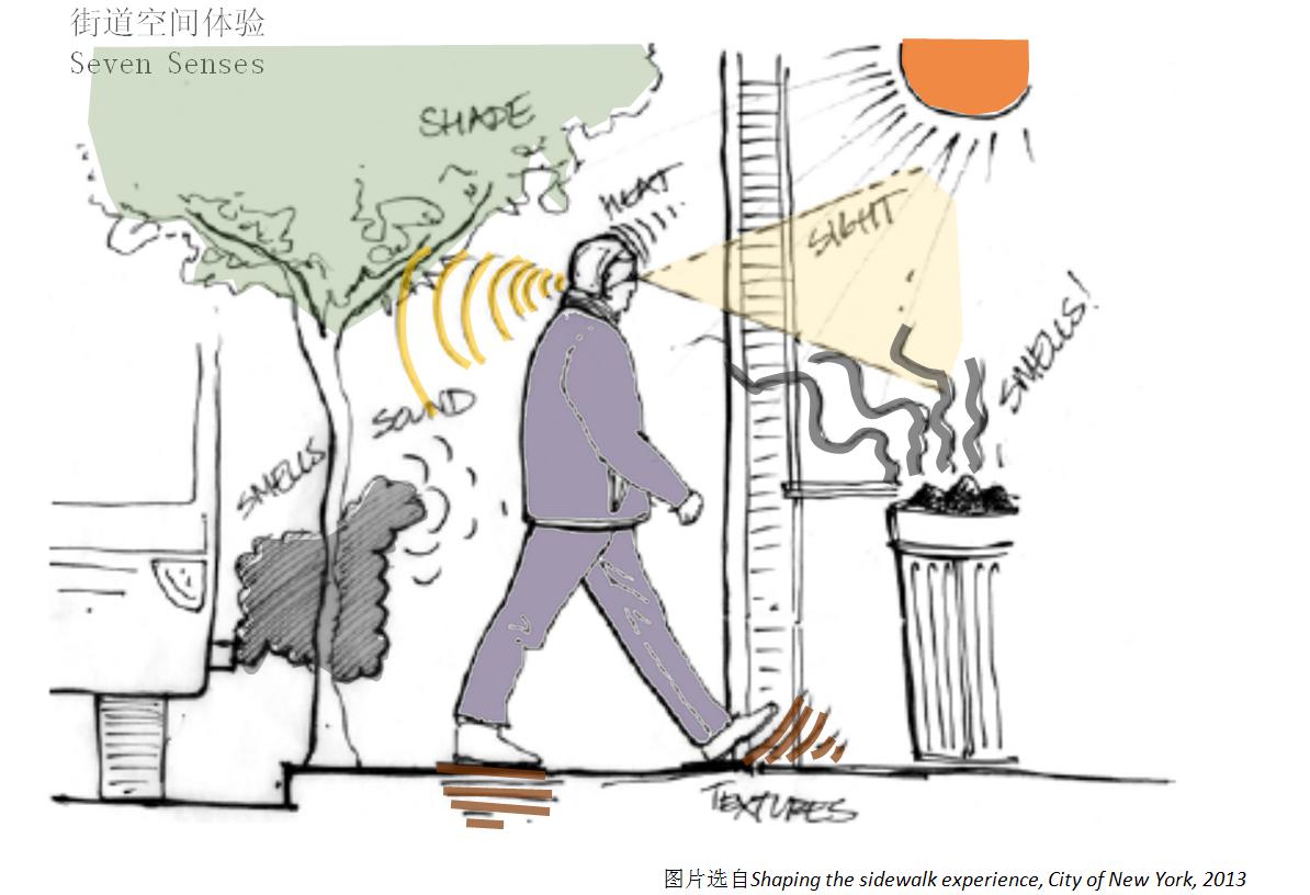 还有我们在街道上身体行进的过程,以及我们的身体由于对抗重力而上下坡、上下楼梯发生的这些动作。从这几个方面如果能去综合考虑、去发散,能够基于这些方面以人的舒适度、人的愉悦作为主要的衡量标准,那我就可以创造一个好的、舒适的街道景观和街道环境。