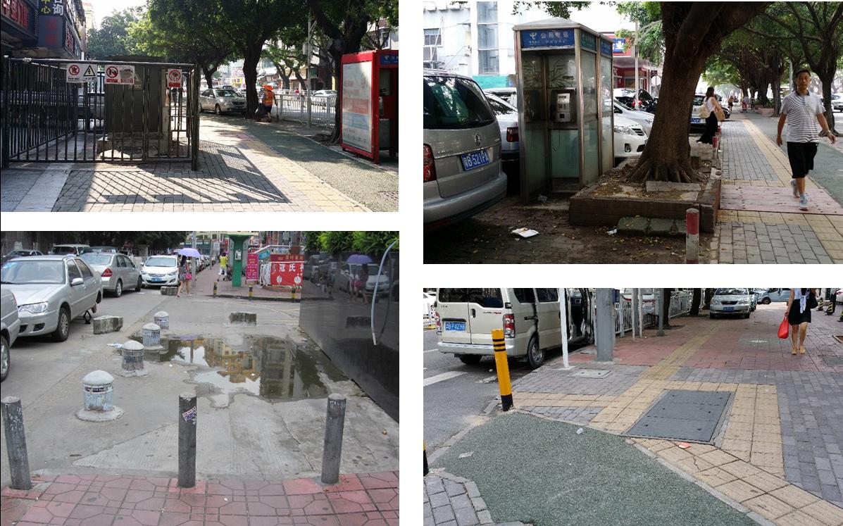 在梳理负面景观的过程中发现,无论是人行道、自行车道还是景观小道,或者是无障碍设施、市政设施、家具小品、绿化、标示牌、道路的路灯、景观灯都存在各种各样的问题,有时候这些问题并不存在于景观元素本身,而是综合作用在这个街道空间下发生了问题。