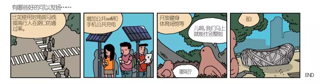 刚刚看的是反讽吐槽公共设施,我们觉得好的设施也要推荐。比如使用一些对角的斑马线,提高行人在路口的通过率。增加公共WiFi和手机公共充电设备。