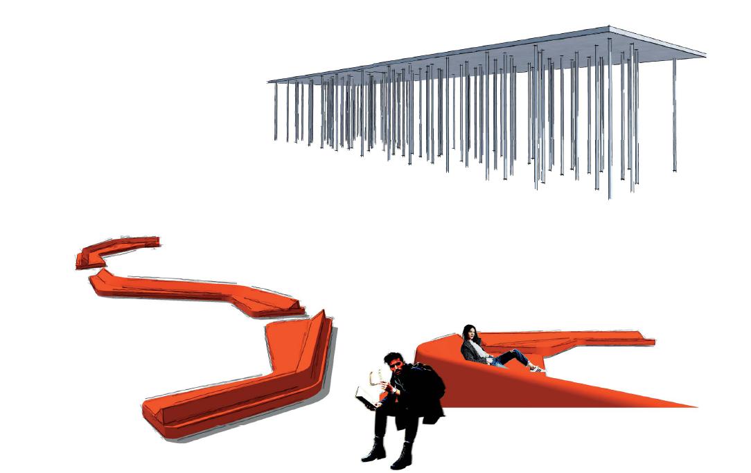 这是西班牙巴塞罗那的一个项目,用了一些强烈的色彩和形态上的设计手法,让这片场地变得非常有特点,也非常具有活力。