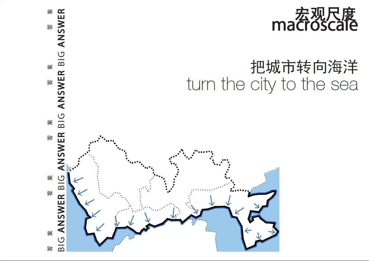 深圳有一个长达230公里的海岸线,面对着香港。 但作为一个深圳的居民,我觉得深圳的是背向海洋的,让人感觉不够亲近,我觉得需要把城市转向海洋,让人们更多的面向海洋景观。
