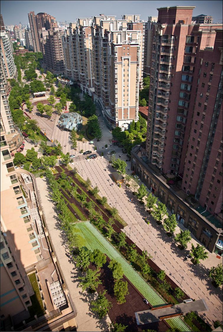 这个街道全长700米,平均宽度60米,跨越了三个街区。两侧是高楼大厦,建有广场喷泉,四周都是树环绕的街区的平台,形成了一个连续的开放的公共空间。这个空间达到了安全、多功能、有趣以及可持续,适合所有的年龄层。