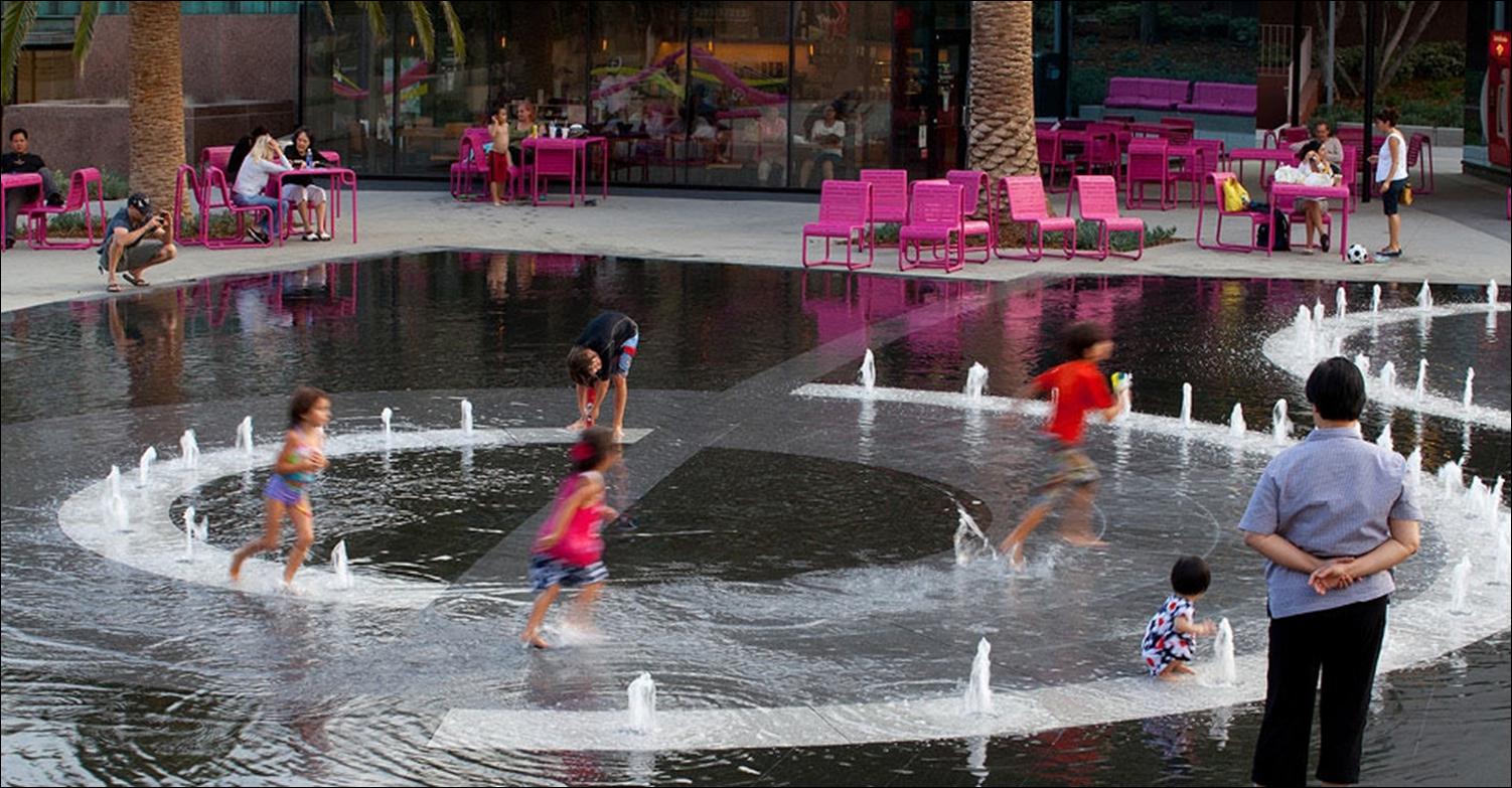 这是一个跨越了四个街区的中心公园,周边是街道和建筑。分了四个功能区,有举办音乐会的草坪、社区的露台、舞台表演场和大型的公共广场,这是表现洛杉矶文化和历史多样性的象征。 这个案例启示我们,公共空间不仅仅是美,不仅仅是景观,也不仅仅是绿化,而是要响应市民的需求。这个公园的建设经历了很多的制定过程,包括与当地的社团组织、艺术团体、市民和政府机构沟通,同时展示了多元的文化,能够适应和引导市民的生活变化。